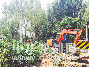 8月22日10時,記者在大慶路橋北西側的濱河路上看到,市園林處的工作人員在平整場地、清除雜草、移栽苗木。