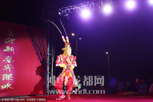 ????還記得小時候我們搬著小板凳到村頭看電影或聽戲嗎?如今啊,農民不再看電影聽戲了,而是開始在村頭辦“村晚”啦。2月2日晚上,太康縣老冢鎮孟莊行政村舉辦了一臺猴年“村晚”。演出現場震天的鼓點和著嗩吶的節拍,熱鬧非凡。英俊的公子、羞怯的大家閨秀,神采奕奕的大爺大媽,一個個生動的角色,一段段幽默詼諧的節目,吸引著附近數十個村的兩萬余名村民在此觀看。