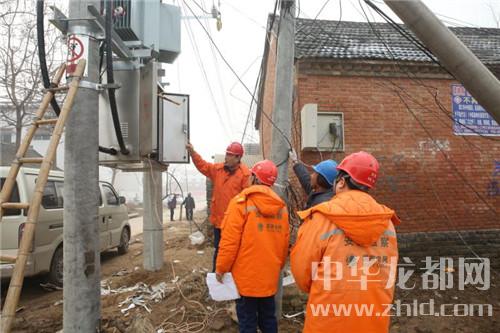 圖為1月16日,縣桐丘電力工程有限公司工程三部施工人員正在對汴崗鎮水泉村進行變壓器更換和高、低壓線路改造施工。