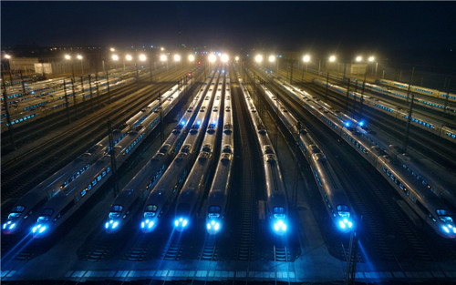 2月1日,動車組列車停靠在天津動車客車段動車運用所。