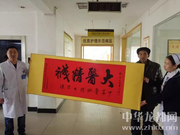 中華龍都網訊(周口報業全媒體記者 徐松 通訊員 張洋)2月26日,和往常一樣忙碌的鄲城縣中醫院消化內科(內七科)收到了一份別具一格的感謝——前不久從消化內科出院的患者羅有志將自己精心準備的書法作品送到了消化內科主任許延杰和護士長劉賽手中,感謝住院期間科室醫護人員對自己的精心治療和熱心服務。