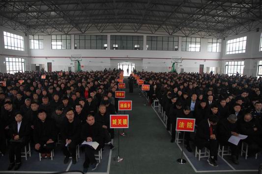 中華龍都網訊(周口報業全媒體記者 馬治衛 通訊員 劉芳亮 張長明)3月3日,太康縣召開掃黑除惡專項斗爭推進大會。王國璽、李錫勇、王程清、張思民、何明照、謝成營等縣四大班子領導出席會議。各鄉鎮黨委書記、分管副書記、綜治辦專職副主任,派出所所長、司法所所長、法庭庭長、行政村支部書記,縣直單位主要負責同志、各部委辦常務副職,政法委、信訪局、法檢公司全體人員參加會議。
