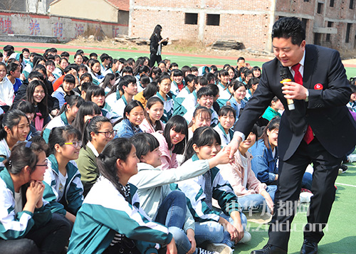 中華龍都網訊(周口報業全媒體記者 李瑞才 通訊員 郭鈺 胡洪濤 文/圖)3月27日上行,鹿邑外國語學校500多名初三學生在操場聆聽來自北京的教育專家包超教授,圍繞學生如何考上一個好高中的勵志演講課。包超通過自己成長的勵志故事,讓學生在潛移默化中接受鼓勵和鞭策,他妙語連珠的演講贏得學生的陣陣掌聲,有許多學生被感染當場流淚。