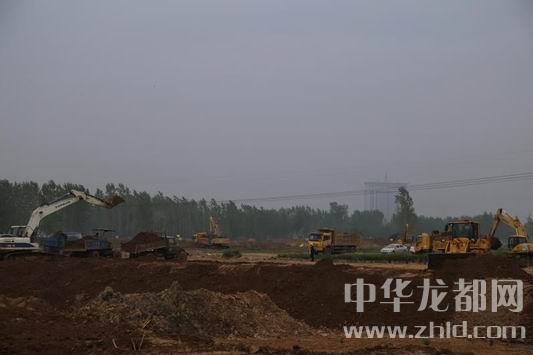 中華龍都網(wǎng)訊(周口報(bào)業(yè)全媒體記者 張勁松文/圖)4月21日上午,記者在東新區(qū)引黃調(diào)蓄施工現(xiàn)場(chǎng)了解到,截至目前,該項(xiàng)目已開(kāi)挖土方79萬(wàn)立方米,遷墳682座,伐樹(shù)21578棵。當(dāng)日上午9時(shí)許,記者在施工現(xiàn)場(chǎng)看到,大型挖掘機(jī)、翻斗車把挖出的黃土拉向湖岸的位置。推土機(jī)轟鳴著在平整場(chǎng)地,酒水車在整個(gè)施工現(xiàn)場(chǎng)來(lái)回不停地奔跑降塵,整個(gè)施工現(xiàn)場(chǎng)60余臺(tái)機(jī)械來(lái)往穿梭,湖的雛形正在形成,湖的面積逐漸“長(zhǎng)”大,北岸湖堤也在逐漸隆起。