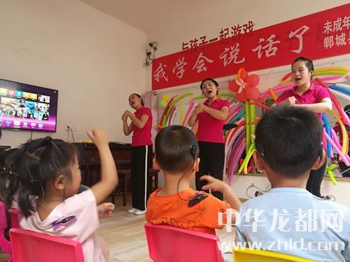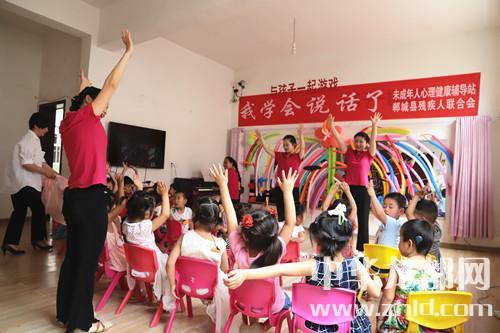家長如此開朗,孩子們的世界肯定會更加陽光。記者隨著鄲城縣殘聯理事長楊瑞林和聾兒語訓中心主任邵莉娜來到了二樓聾兒語訓學習班?!拔覍W會說話了”,大愛至簡,教學班里僅此一句標語,墻上是一面鏡子,鏡子上貼滿了老師和孩子們一起做的彩氣球,旁邊是一架鋼琴,4位語訓老師正在張著大口(說話標準口形)、動作夸張地給孩子上聽力課,老師邊彈琴,邊做手指舞、跳少兒舞,孩子們慢慢聽、慢慢模仿、慢慢張口咿呀跟著唱……