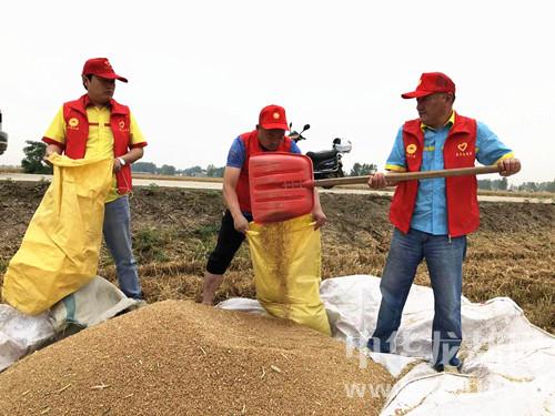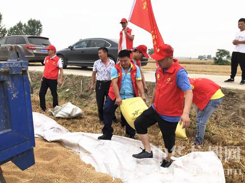中華龍都網(wǎng)訊(周口報(bào)業(yè)全媒體記者 付永奇 通訊員 高華)6月2日,在商水縣白寺鎮(zhèn)趙金言家的麥田里,一臺(tái)大型收割機(jī)正在作業(yè)。中石油周口分公司10多名青年志愿者在麥田里不停的忙碌著,從麥籽出倉(cāng)到裝袋、裝車,井然有序;中石油周口分公司總經(jīng)理、黨委書記何學(xué)習(xí)為收割機(jī)司機(jī)遞上收割費(fèi)用,并送上汗衫、毛巾、手套等日常用品。