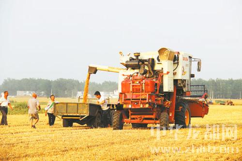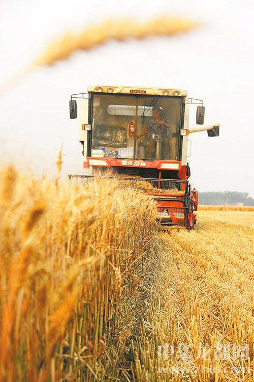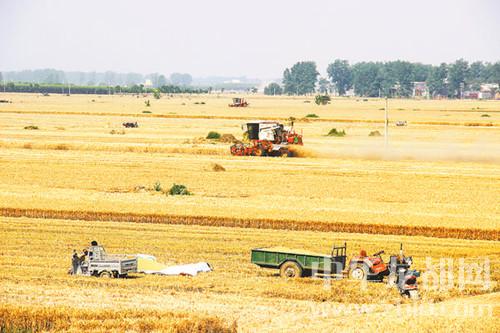 現(xiàn)在我市麥?zhǔn)找呀猜暋J斋@時,縱橫交錯的麥田一片金黃,把鄉(xiāng)村裝點得格外美麗。收割機(jī)在麥田中穿梭,陣風(fēng)吹過,麥浪隨風(fēng)起舞,猶如一幅田園畫卷。呂耀光 攝