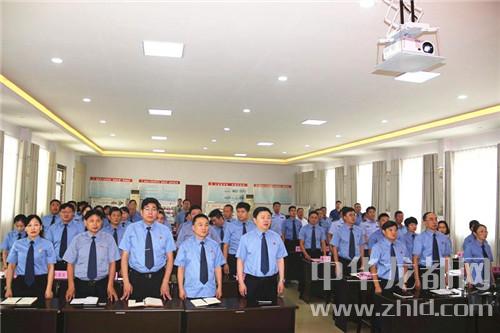 伴隨著雄壯磅礴、耳熟能詳的旋律,魯建軍檢察長和全體干警們共同唱起了中華人民共和國國歌。歌聲把人們帶回了中國共產黨領導廣大人民群眾在民主革命和社會主義建設的崢嶸歲月……