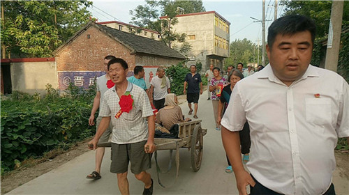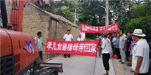 當(dāng)日早上,秋渠鄉(xiāng)高小橋行政村牛橋和孫大莊自然村,鄉(xiāng)村干部打著橫幅、孝順兒、媳胸帶紅花,用架子車?yán)先耍竺娓鴩^的村民,通過隆重“接老人回家”活動,激勵(lì)更多人孝老愛親。