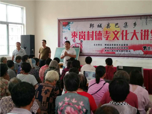 8月17日至19日,鄲城縣巴集鄉棗崗文化活動中心舉行了為期三天的徳孝文化大講堂,本次活動由縣質監局、縣國學會、棗崗行政村黨支部村委會主辦。旨在進一步樹立社會新風,建立良好的家風家規,深入弘揚和傳承中華徳孝傳統文化,積極培育和踐行社會主義核心價值觀,提高公民素質和社會文明程度,形成“以德修身、以身孝親”的良好風尚。