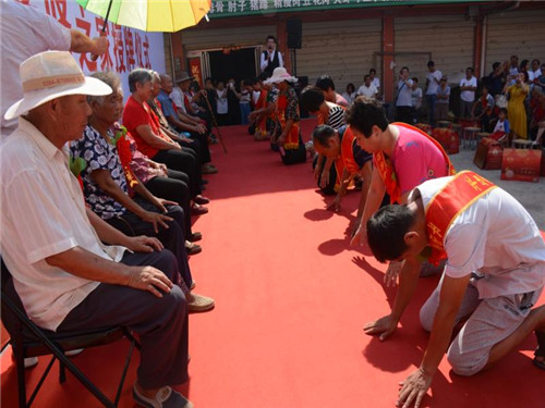鄉(xiāng)長吳國鋒發(fā)表了熱情洋溢的致辭。他首先代表平店鄉(xiāng)黨委、政府、人大向受到表彰的先進(jìn)模范和先進(jìn)家庭表示熱烈的祝賀并致以崇高的敬意。并詳細(xì)闡述了開展“孝善敬老讓愛回家、孝賢之星表彰授牌暨解決獨(dú)居老年人問題、助力脫貧攻堅(jiān)的重大意義,他希望受到表彰的先進(jìn)代表和家庭要珍惜榮譽(yù)、再接再厲,繼續(xù)弘揚(yáng)尊老、敬老、養(yǎng)老、愛老的傳統(tǒng)美德,推動(dòng)全鄉(xiāng)“孝善敬老”文化不斷邁向新臺(tái)階。活動(dòng)現(xiàn)場(chǎng)宣讀了《平店鄉(xiāng)人民政府敦促將被贍養(yǎng)人接入安全住房共同生活的通告》;與會(huì)領(lǐng)導(dǎo)為孝賢之家頒獎(jiǎng)授牌;28個(gè)“孝子孝媳”在臺(tái)上統(tǒng)一施行叩拜大禮;活動(dòng)結(jié)束后,鄉(xiāng)政府指派3名班子領(lǐng)導(dǎo)和10多名工作人員,分別乘坐6臺(tái)輛,由嗩吶隊(duì)開路,風(fēng)風(fēng)光光把28個(gè)老人送回了家。一路引來不少群眾駐足注目觀看,廣大群眾對(duì)此嘖嘖稱贊、拍手稱快。