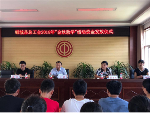 8月30日上午,鄲城縣總工會2018年“金秋助學”活動助學金發放儀式在縣總工會五樓會議室舉行。