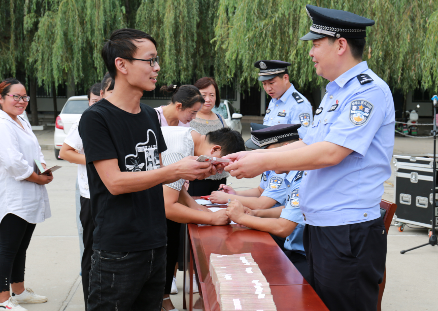 9月6日,扶溝縣公安局舉行公開退贓大會,將“2·28”詐騙案追繳的56萬元現金返還給受騙群眾。