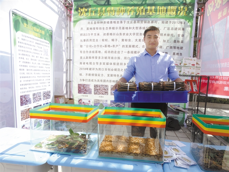 9月22日,沈丘縣舉辦第一個中國農民豐收節慶祝活動,來自全縣22個鄉鎮(辦事處)的35家農民種植、養殖合作社和家庭農場,展示了槐山藥、黃金梨、冬棗、木瓜、“袖珍”黃瓜、活體蜈蚣、蝎子等120余個品種。