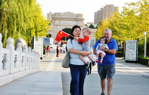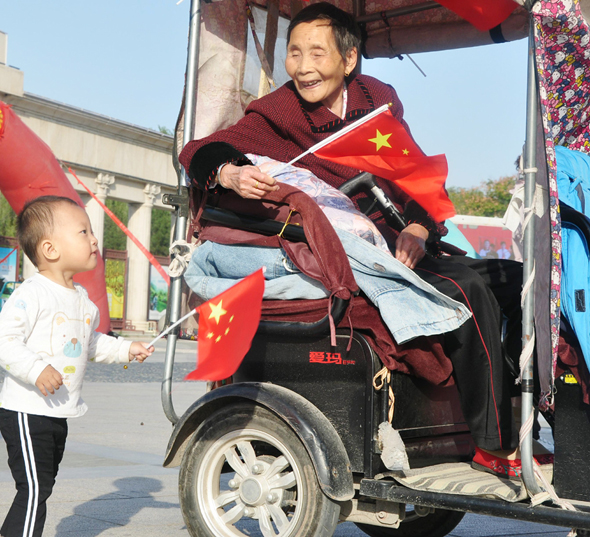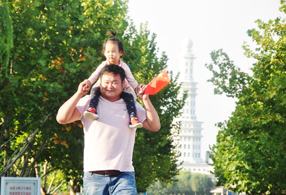 “看著滿眼的國旗紅,心情特別激動,真心為祖國的發展與強大感到驕傲和自豪。”10月1日上午,市民王先生帶著家人來到周口公園,感受濃濃的國慶氛圍。