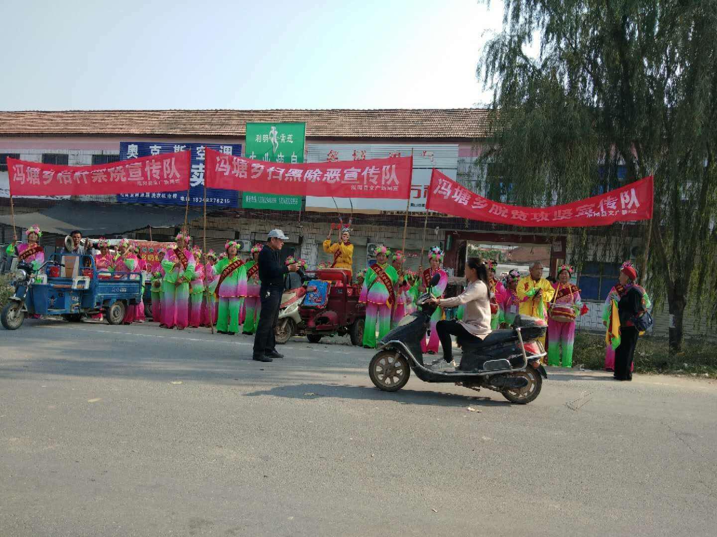 馮塘鄉脫貧攻堅、秸稈禁燒、掃黑除惡三支宣傳隊進行宣傳。