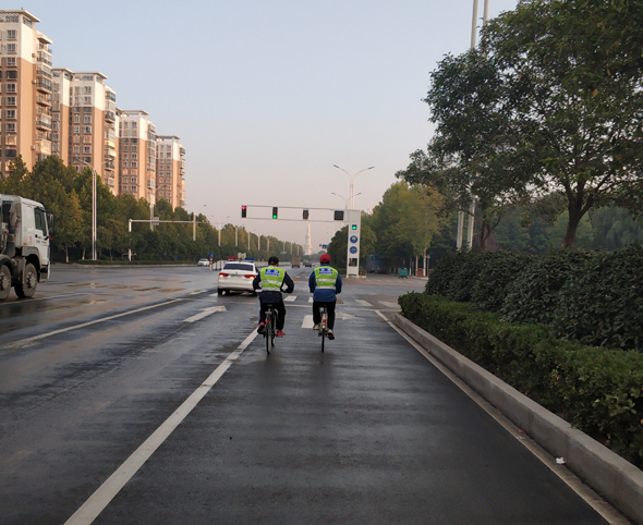 10月3日6時(shí),國(guó)際級(jí)丈量員、吉林體育學(xué)院教授袁林受中國(guó)田徑協(xié)會(huì)委派,與周口馬拉松組委會(huì)工作人員一起,對(duì)周馬新調(diào)整的賽道進(jìn)行精準(zhǔn)丈量。