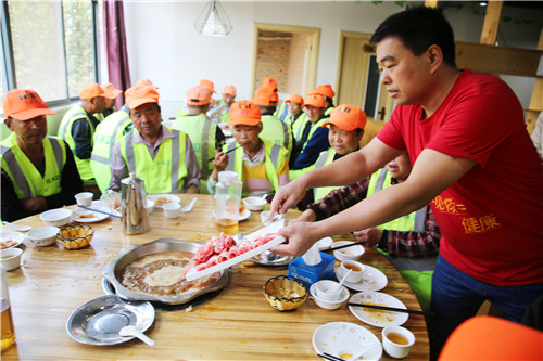 “環衛工人的收入都不高,平時可能舍不得花錢吃頓好的,每天都見他們辛苦勞作,我就想犒勞犒勞他們。”據了解,一個禮拜前劉東亞就開始著手準備,并把自己的想法告訴了環衛部門相關負責人,得到了環衛部門的大力支持。記者詢問這次請客大概花費了多少,他笑著說其實也不算多,每桌飯菜的標準在500元左右。