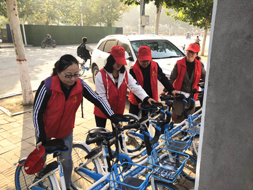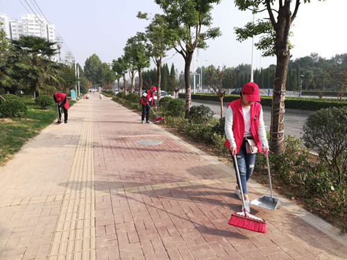 為扎實推進“五城聯創”工作深入開展,調動廣大市民積極參與“五城聯創”工作的積極性、主動性,我市在中心城區開展了為期一個月的“灑掃庭院迎賓客,文明創建我助力”活動。圖①為中國人民銀行職工在清理小廣告。圖②為中國人壽職工在清掃路面。圖③為市公路局職工在清理綠化帶。圖④為周口師范學院師生在整理共享單車。