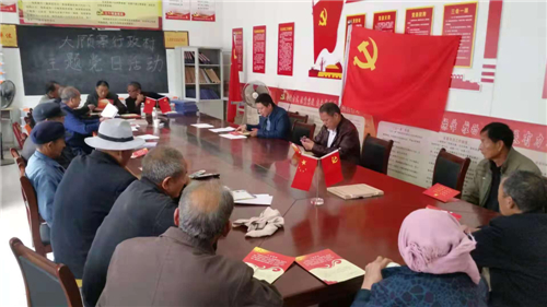 “我志愿加入中國(guó)共產(chǎn)黨,擁護(hù)黨的綱領(lǐng),遵守黨的章程,履行黨員義務(wù)……”在汲水鄉(xiāng)張嶺行政村室,汲水鄉(xiāng)黨委副書記王申帶領(lǐng)全體黨員面對(duì)黨旗,一起重溫入黨誓詞,并學(xué)習(xí)黨章黨規(guī)。