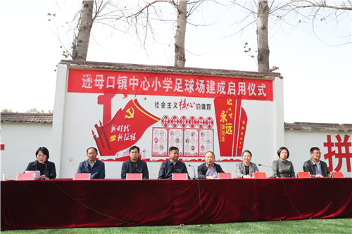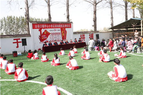啟用儀式上,該縣遜母口鎮中心小學的學生們愉快地表演了足球操,少先隊員分別向領導和嘉賓佩戴紅領巾表達感恩之情。河南省第十三屆人大代表張華女士代表足球場捐建單位講話。張華說,當前,隨著脫貧攻堅深入開展,家鄉的各項事業蓬勃發展。作為遜母口鎮的一員,看到家鄉這些年翻天覆地的變化,感到特別喜悅。作為一名省人大代表,為助力家鄉脫貧攻堅,同時落實“脫貧攻堅人大代表在行動”號召,便決定投資50萬元為遜母口鎮中心小學建立一個高標準的踢足場,滿足孩子們踢足球的愿望。