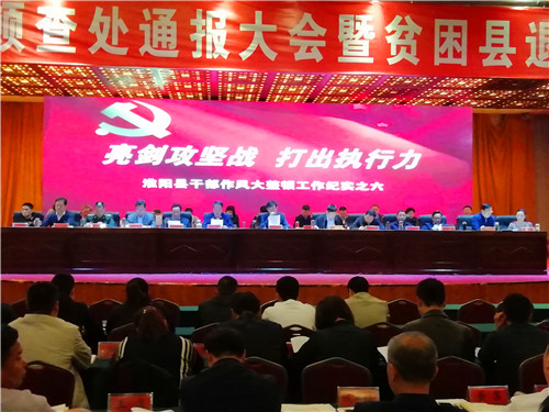 10月31日上午,淮陽(yáng)縣干部作風(fēng)大整頓查處通報(bào)大會(huì)暨貧困退出縣級(jí)自評(píng)動(dòng)員會(huì)在羲皇賓館東三樓會(huì)議廳召開。縣委書記馬明超出席會(huì)議并講話,縣長(zhǎng)王毅主持會(huì)議,縣委副書記、政法委書記岳新坦宣讀《脫貧攻堅(jiān)督查通報(bào)》,縣委常委、縣紀(jì)委書記、縣監(jiān)委主任王之夢(mèng)宣讀《通報(bào)》,被通報(bào)單位負(fù)責(zé)人作表態(tài)發(fā)言。