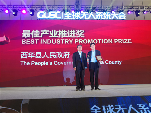 11月4日至5日,西華縣委書記林鴻嘉應邀赴珠海國際會展中心出席2018第二屆全球無人系統大會,并以其在無人機推廣應用方面的突出貢獻榮獲大會唯一“最佳產業推進獎”。中國工程院院士、空空導彈專家、俄羅斯工程學院外籍院士樊會濤為林鴻嘉頒獎。