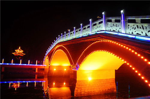 統計數據顯示,貫穿城區(qū)“五河”的濱水景觀廊道目前已達45公里,環(huán)繞互通的水系雨污分流,清波蕩漾,千年古城活力再現;沿岸廣場、游園、玉欄、花木、亭、廊、親水平臺,玲瓏別致,相映成趣,形成了無數個多元空間,為市民提供了休閑健身空間和漫步快跑的理想場所;城區(qū)的50多座街心主題文化園,依勢而修,與沿河的美化、綠化、亮化融為一體,每天傍晚,清波蕩漾,虹橋飛架,臥波噴泉伴隨著悠揚的音樂翩翩歡舞,“五河”上下,燈火璀璨,絢麗多彩,如夢如幻。“九河繞真源,五湖潤鹿邑”的生態(tài)水系景觀讓行走其間的人恍若走進江南水鄉(xiāng),人在水上,水在畫中的美妙意境讓行走其間的人身心放松、回歸自然。