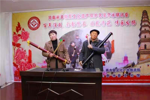 研討會上,省級非遺漁鼓道情唯一傳承者杜三合和弟子趙春進行了現場表演。