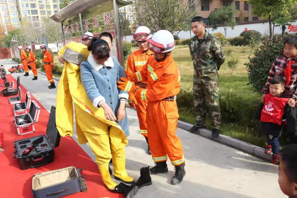 為持續推進“119消防宣傳月”活動,提高在校師生的消防安全意識和自防自救能力,11月20日,鄲城縣城關鎮羅堂小學100余名師生走進鄲城消防大隊營區,零距離體驗消防員生活,學習消防安全知識。圖為消防隊員幫助小學生試穿消防戰斗服。