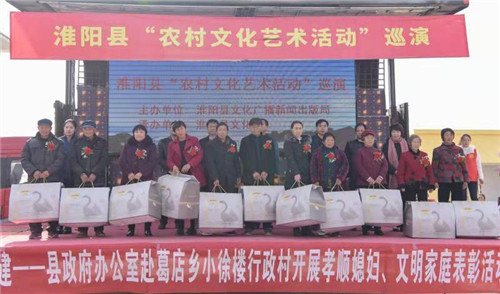 當天,不僅表彰了11名孝順媳婦、11個文明家庭,贈送了價值3萬余元的辦公用品、慰問品和各類圖書1000余冊,還開展了義診活動。同時,由縣政府辦公室文藝志愿者、社會義工等共同為廣大群眾送上了一場文藝盛宴。