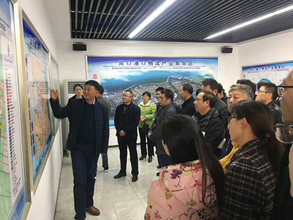 11月24日下午,周口師范學院黨委統戰部部長張建夫帶領由60名專家學者、教授組成的專家團,到周口中心港碼頭考察。港區黨委委員張東立,市百城辦聯絡人顧家毫陪同。