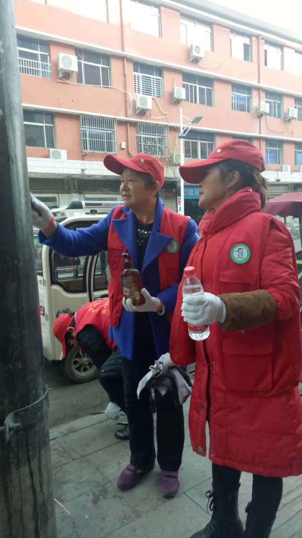 前來參加活動的劉愛青和岳巧玲兩位老人今年都是61歲,她們在清理小廣告的時候,動作麻利,做事認真,直到把每一個小廣告清理的干干凈凈才才肯罷手。