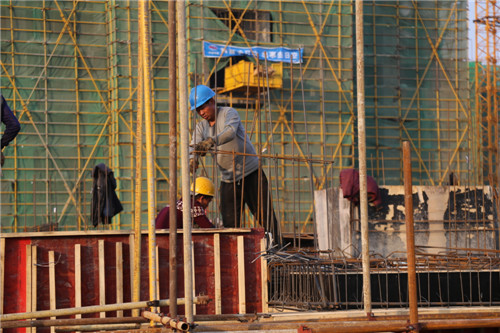 當日下午,記者在現場看到,施工人員正在緊張施工。樓上,工人們在嫻熟捆扎鋼筋;地面,叉車、挖掘機、灑水車等機械交叉進行作業,施工現場一派熱火朝天的景象。“21棟樓已有9棟出正負零,最高一棟已施工至第十層,其余幾棟樓房預計在12月底全部出正負零。”泰和家園項目安質部經理李加林介紹,該項目總建筑面積32.7萬平方米,共建安置房2108套。其中9棟樓正在進行主體結構施工,其余幾棟樓正在進行梁板鋼筋綁扎和頂板支模,預計2019年4月底實現所有樓層全部封頂。