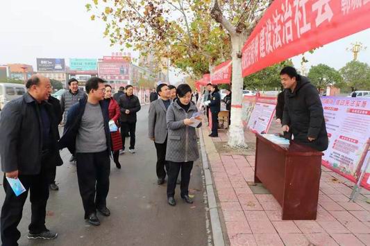 羅文閣一行邊走邊看,和工作人員認真交談,詳細了解普法宣傳教育活動開展情況。羅文閣指出,憲法是國家的根本法,是治國安邦的總章程,全縣上下要堅持以習近平新時代中國特色社會主義思想為指導,把憲法學習宣傳工作擺在當前工作重要位置,深入開展以憲法為核心的法治宣傳教育,教育引導各級組織和全體公民牢固樹立憲法和法律意識,在全社會營造濃厚的法制宣傳氛圍。要深入開展“法律六進”,提高全民法律素質;要積極開展“民主法治村”“民主法治社區”創建活動;要繼續圍繞全縣脫貧攻堅決策部署,開展法治宣傳教育助力精準扶貧攻堅活動;要加強法治文化建設,營造法治文化氛圍;要注重優化法律服務質量,提升法律服務工作水平,切實維護群眾合法權益;要團結奮進,開拓創新,扎實做好全面依法治縣各項工作,奮力開創新時代法治鄲城建設新局面。