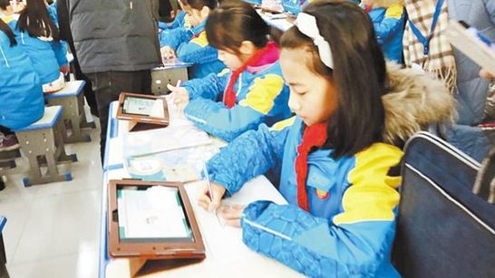 12月13日上午,參加2018年周口市教育信息化工作推進現場會的教育工作者,現場觀摩了周口市文昌小學、周口市第十九初級中學和周口一高3所學校的智慧校園建設情況。圖為在周口市文昌小學的“智慧課堂”上,學生和老師通過手中的平板電腦進行互動,實現了課堂教學的信息化和智慧化。