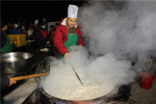 早上6點(diǎn),“香噴噴餃子出鍋嘍”……隨著占鍋的志愿者大廚王偉峰的喊聲,縣統(tǒng)戰(zhàn)部副部長李忠、王天輝,縣質(zhì)監(jiān)局局長王桂榮、臺(tái)辦主任馬艷勤等帶領(lǐng)志愿者盛水餃,一拖板放置六碗、擺在桌上、預(yù)集中端送。