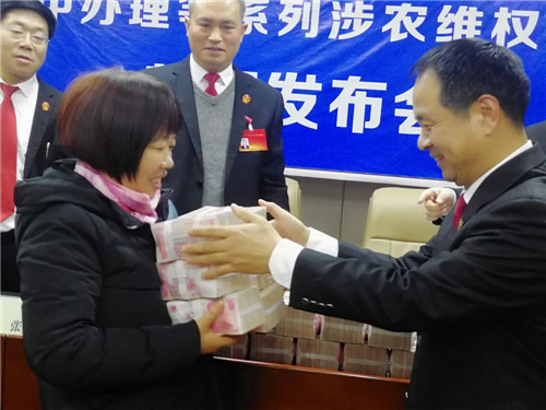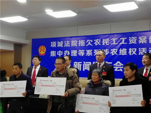 “感謝項城法院的領(lǐng)導(dǎo),他們一心為民,克服種種困難,幫助我們要回了血汗錢?!?2月24日,項城法院拖欠農(nóng)民工工資案件集中辦理等系列涉農(nóng)維權(quán)活動新聞發(fā)布會在該院召開,16名涉農(nóng)維權(quán)案件當事人從項城法院黨組成員、院長張永波的手中接過索要許久的血汗錢,喜極而泣。