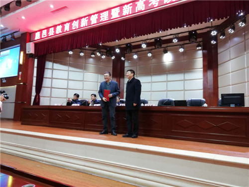 12月26日,鹿邑縣召開教育創新管理暨新高考改革專家報告會。縣委副書記、縣長李剛為報告會致辭,勉勵全縣教育工作取得新突破。縣委常委、縣委辦主任宋濤主持會議。副縣長王玉超為全國高考命題理科組組長、原上海虹口區教育局局長、同濟大學理學博士常生龍局長頒發"鹿邑縣教育提質特聘專家"證書,會議還對全縣教育工作者作專題講座。