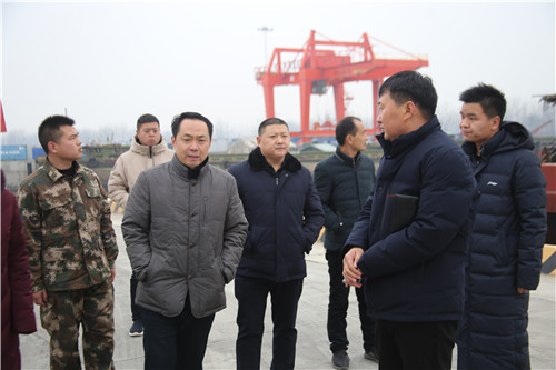 在周口中心港碼頭,程若光向負責人了解當前港口碼頭設備的運轉運行情況后,要求港口碼頭要在確保安全生產的情況下開展各項工作。
