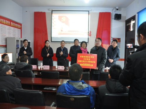 作為河南省人民檢察院的直屬學校,河南檢察職業學院也積極參與瓦房莊的脫貧攻堅工作。在當日舉行的河南檢察職業學院文化扶貧啟動儀式上,他們不僅送來了精彩的黨課,還為該村小學捐贈現金5萬元,用于村小學操場硬化,改善辦學條件。