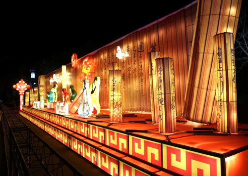 主題燈會(huì)老子布道、孔子問(wèn)禮、武則天祭祖等造型與老子故里、人文鹿邑相得益彰,卡通肥豬為游客獻(xiàn)上一場(chǎng)憨厚的可愛(ài)形象,太極殿前日月潭內(nèi)青煙渺渺,在燈光的變化下讓人仿佛步入仙境,各個(gè)角落的樹(shù)木花草彩光熠熠,整個(gè)太清宮內(nèi)是光的海洋……