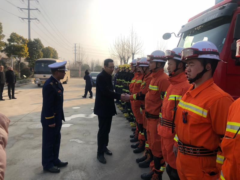 在開發區消防大隊,王文峰與每一位消防隊員握手,詳細詢問他們的工作、生活、學習情況。王文峰指出,2018年,開發區消防大隊牢記“聽黨指揮,能打勝仗,作風優良”,努力訓練,敢于戰斗,面對一系列急難險重任務能夠拉得出、打得贏,為保障人民群眾生命財產安全作出了重要貢獻。新的一年,全市消防救援隊伍要繼續發揚特別能吃苦、特別能戰斗的優良傳統,加強應急救援綜合能力建設,真正發揮好應急救援主力軍和國家隊的職能作用。