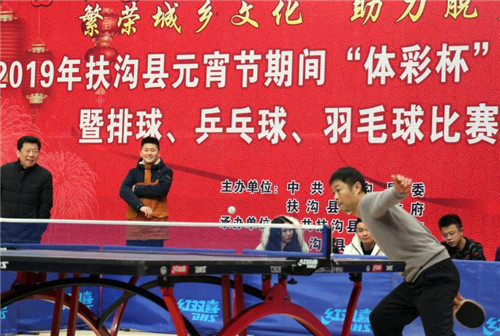 2月17日上午,元宵佳節即將來臨之際,在全縣脫貧攻堅沖刺的關鍵時期,扶溝縣2019年元宵節“體彩杯”全民健身展示暨排球、乒乓球、羽毛球比賽活動在縣體育館隆重開幕。活動旨在豐富全縣廣大人民群眾的文化生活,助力脫貧攻堅,為實現“五個扶溝”增光添彩。縣委常委、宣傳部長馬昭才,副縣長吳興華等出席開幕式。縣委宣傳部副部長張根主持開幕式。