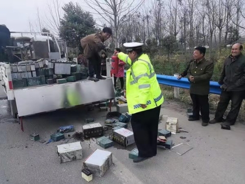 3月13日下午14時45分,鄲城縣交警大隊治超中隊民警張鑫帶隊在汲冢萬樓卡點執勤時,一名女司機將車輛停靠在萬樓卡點,急急忙忙下車向張鑫求助,稱在萬樓執勤卡點東2公里路北處,一輛拉有電瓶的貨車因電瓶連線導致后車廂著火,司機和同行人員急得在路邊直哭。