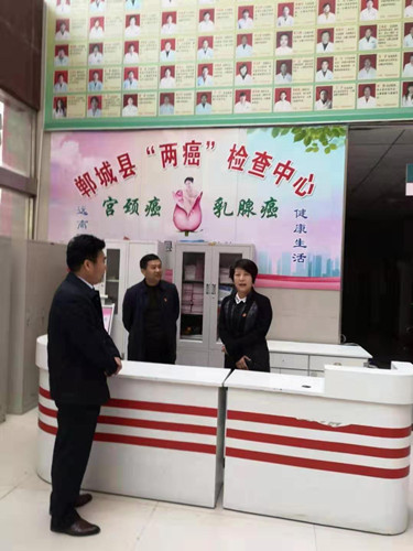 近日,鄲城縣副縣長肖煒、縣衛(wèi)計委主任付登霄一行,到鄲城縣婦幼保健院檢查指導(dǎo)“兩癌”免費(fèi)篩查工作,該院院長亢國良、院工會主席楊敏陪同檢查。