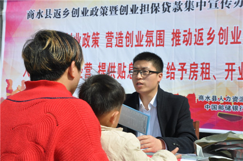 3月18日上午,商水縣人社局和縣郵儲銀行聯合在省級農民工返鄉創業示范園區周口汽配城開展創業補貼、創業擔保貸款優惠政策宣傳。