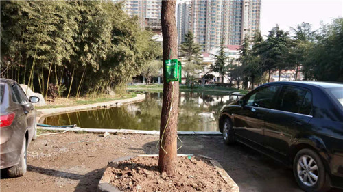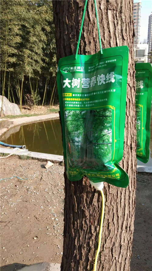 3月18日,記者在市教體局院里看到,幾棵樹上都掛著一個綠色的塑料袋,塑料袋上寫著“大樹營養(yǎng)快線”,袋口向下連著一個導(dǎo)管,導(dǎo)管與普通的輸液器非常相像,只是在中間的位置分成了兩根,分出來的兩根導(dǎo)管末端各連著一個針頭,針頭插進(jìn)大樹接近樹根的位置。據(jù)悉,這些“營養(yǎng)快線”可以為樹木補充營養(yǎng)和水分,促進(jìn)樹木生根、發(fā)芽,幫助樹木增強抗病能力,提高樹木的成活率,保證樹木整體長勢。