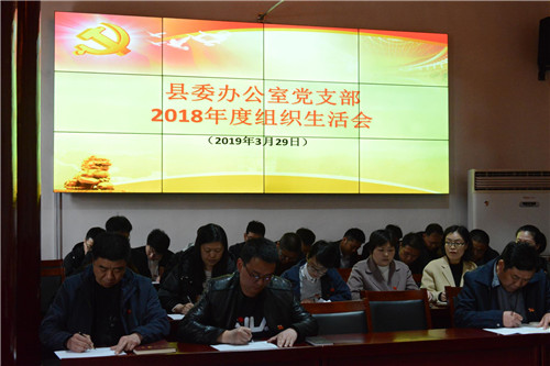 3月29日下午,鹿邑縣委辦公室黨支部召開2018年度組織生活會并開展民主評議黨員活動。縣委書記梁建松,縣委常委、辦公室主任宋濤以一名普通黨員身份參加會議。縣委辦公室機關全體同志參加會議。