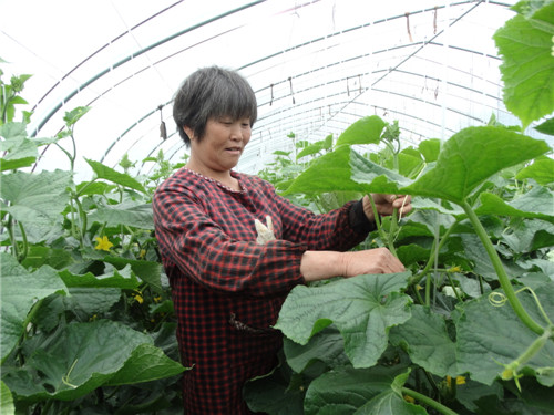 4月24日,沈丘縣周營鎮趙莊村生態蔬菜大棚基地里,綠油油的吊蔓黃瓜長勢喜人,少量已采摘上市。忙碌著的菜農王翠霞告訴記者:“俺今年種了20畝地的大棚黃瓜,從種子肥料,到用水用藥,都有講究,要按標準化生產,這樣種出來的黃瓜品質好,客商搶著要。一畝地大棚瓜果蔬菜的年收入超過1.5萬元。”
